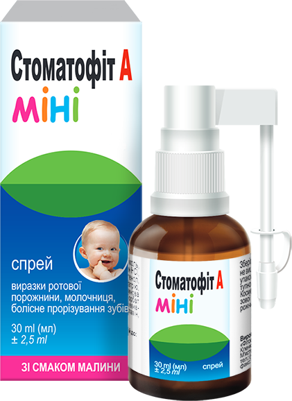 Спосіб застосування: Вікові групи Дозування Стоматофіта A МІНІ менше 1 року 1 доза* з обох сторін ясен до 3 разів в добу 1 рік-3 роки 1 доза* з обох сторін ясен 3-4 рази в добу 4 роки - 12 років 2 дози* з обох сторін ясен до 3-4 разів в добу старше 12 років 3 дози* з обох сторін ясен до 5 разів в добу *1 доза = 1 розпилення. Після використання близько 15 хвилин не рекомендовано вживати їжу та напої.